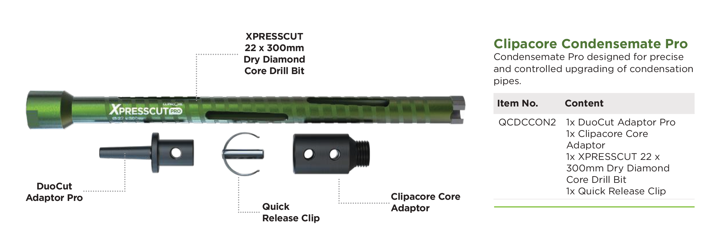 - 1x Quick Release Clip (Please note: the larger, outer core bit is not supplied with this kit).